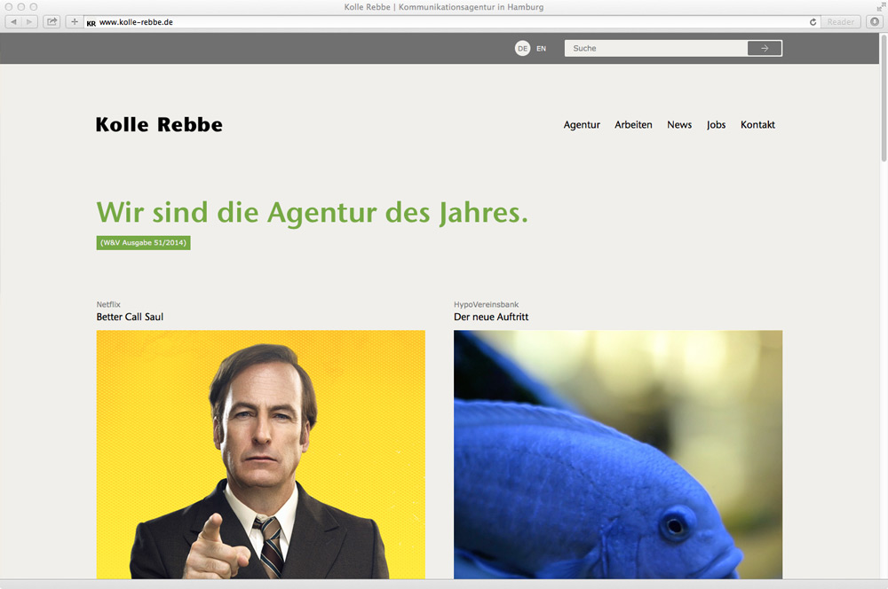 Website for the advertising agency kolle rebbe.