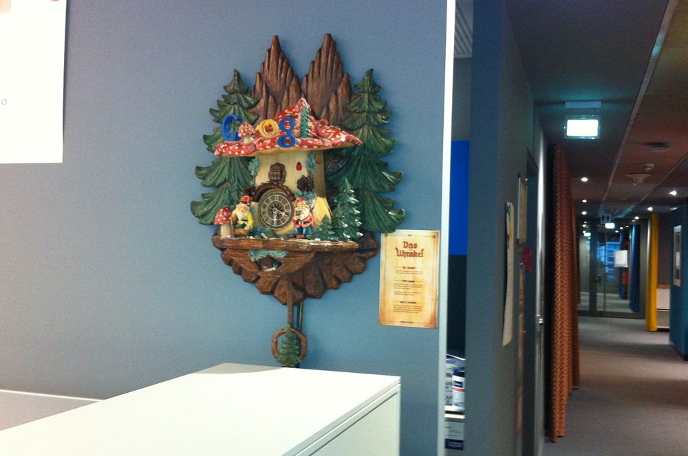 An electric prediction machine build in a custom handmade cuckoo clock for Google. The clock can be activated through a special passphrase ("Ok, cookoo") and you can ask any "either/or" question. The cuckoo thinks about your questions (custom Google algorithm) and tries to predict the right answer.
